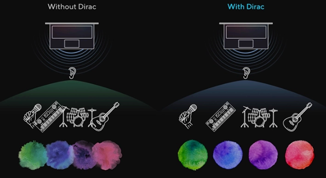 Σχεδιασμένο με τη βοήθεια των ειδικών της Dirac, παρόχου επαγγελματικών λύσεων ήχου, το σύστημα ήχου χαρίζει τις πιο επιβλητικές, καθαρές και ισορροπημένες εμπειρίες σε PC, laptop ή tablet. Μέσω της αναπαραγωγής περισσότερων ήχων απ’ όσους μπορείτε να φανταστείτε, θα ανακαλύψετε το πλήρες φάσμα δυνατοτήτων του laptop.