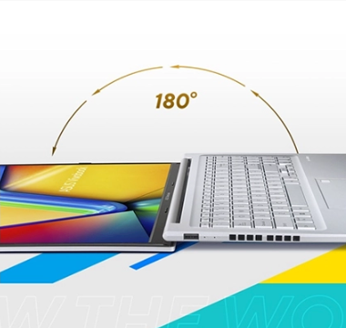 Το Vivobook 16 διαθέτει έναν μηχανισμό ακριβείας περιστροφής 180° που κάνει εύκολη την κοινή χρήση περιεχομένου όπως τη συνεργασία με μία ομάδα ατόμων γύρω από ένα τραπέζι.