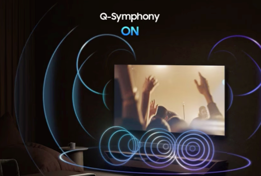 Απολαύστε εκπληκτικά ενορχηστρωμένο ήχο. Η τεχνολογία Samsung συγχρονίζει τον ήχο από την τηλεόραση και το συμβατό soundbar ώστε να αναπαράγονται ταυτόχρονα, χωρίς να τίθενται σε σίγαση τα ηχεία οποιασδήποτε συσκευής.