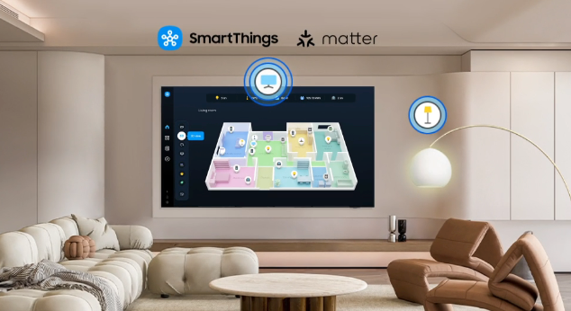 Με ενσωματωμένο smart hub, η τηλεόρασή σας μπορεί να συνδεθεί σε έξυπνες συμβατές συσκευές και να τις ελέγξει, ακόμη και όσες απαιτούν συμβατότητα Matter και HCA. Μπορείτε επίσης να λαμβάνετε ειδοποιήσεις για τις συσκευές σας απευθείας μέσα από την οθόνη σας, όπως μια Προβολή Χάρτη 3D που εμφανίζει ολόκληρο το σύστημα του smart σπιτιού σας με μια ματιά.