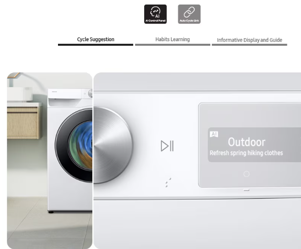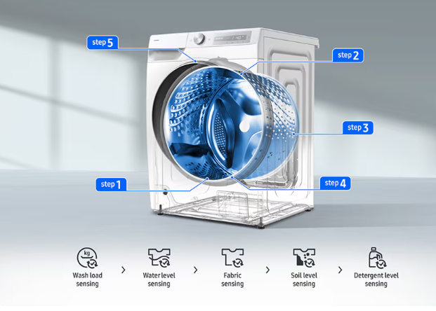 Το AI Wash χρησιμοποιεί αισθητήρες για να “καταλαβαίνει” το βάρος, το ύφασμα και τον βαθμό λερώματος των ρούχων σου. Έπειτα προσαρμόζει νερό, απορρυπαντικό, μούλιασμα και στέγνωμα για τέλειο αποτέλεσμα χωρίς ταλαιπωρία. Και αν σε “μάθει”, μπορεί να χρησιμοποιήσει ακόμη και λιγότερο απορρυπαντικό.