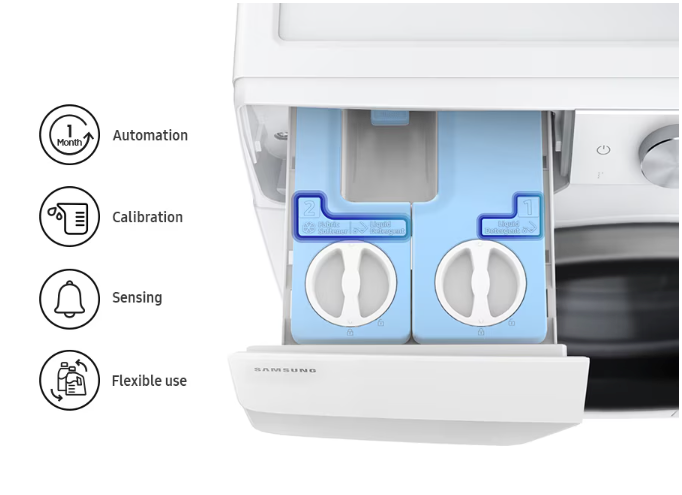 Με το Auto Dispense, το πλυντήριο βάζει μόνο του τη σωστή ποσότητα απορρυπαντικού και μαλακτικού σε κάθε πλύση. Έχει ξεχωριστές θήκες – ή τις χρησιμοποιείς και τις δύο για απορρυπαντικό – και δεν χρειάζεται να τις ξαναγεμίζεις κάθε φορά. Χαλάρωσε, το έχει!