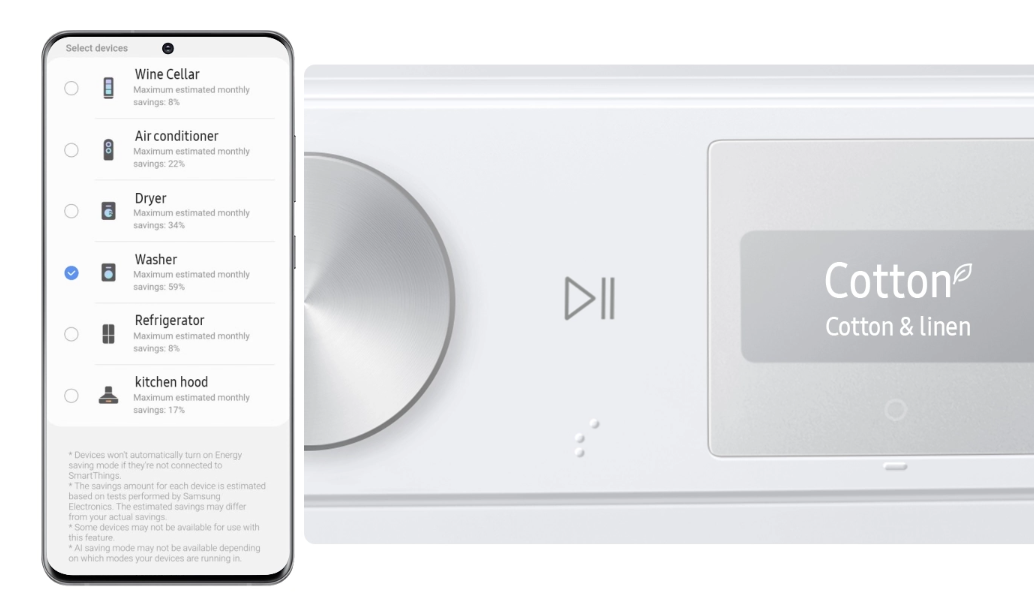 Με το SmartThings AI Energy Mode μπορείς εύκολα να παρακολουθείς και να ρυθμίζεις τη χρήση ενέργειας του πλυντηρίου σου. Η λειτουργία AI Energy mode “πειράζει” έξυπνα τις ρυθμίσεις και μπορεί να ρίξει την κατανάλωση έως και 70%, χρησιμοποιώντας EcoBubble™ για πλύσιμο με κρύο νερό και λίγο παραπάνω χρόνο. Έτσι εξοικονομείς ενέργεια χωρίς να χρειαστεί να κάνεις… μαγικά.