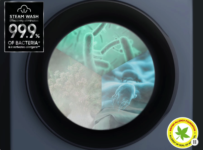 Το Hygiene Steam διεισδύει στις ίνες και απομακρύνει τους σκληρούς λεκέδες, ενώ εξαλείφει έως 99,99% των βακτηρίων και πολλών αλλεργιογόνων από ακάρεα, κατοικίδια, γύρη και μύκητες. Τα ρούχα σου βγαίνουν καθαρά και… ανακουφισμένα.