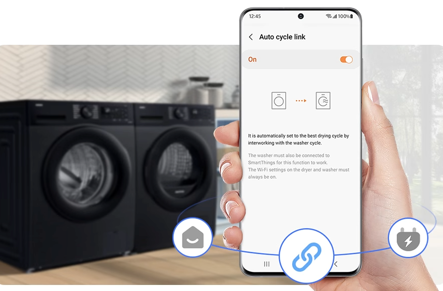 ✔ Επιπλέον, με την εφαρμογή SmartThings, μπορείς να ελέγχεις την ενέργεια και να διατηρείς το πλυντήριο σε άριστη κατάσταση με εύκολη συντήρηση.